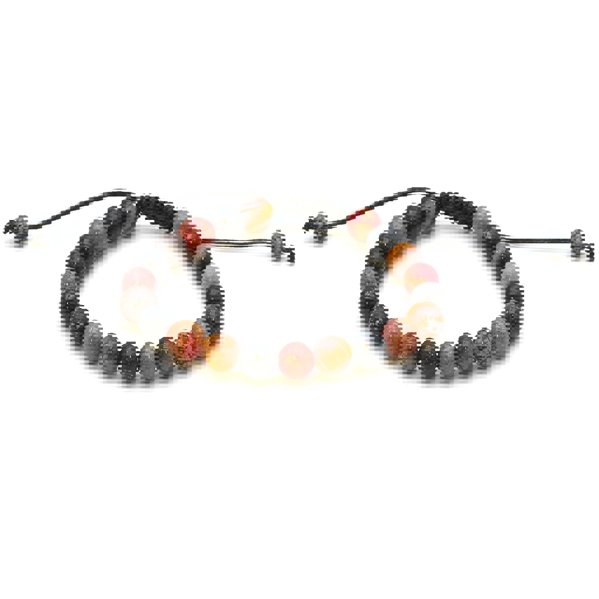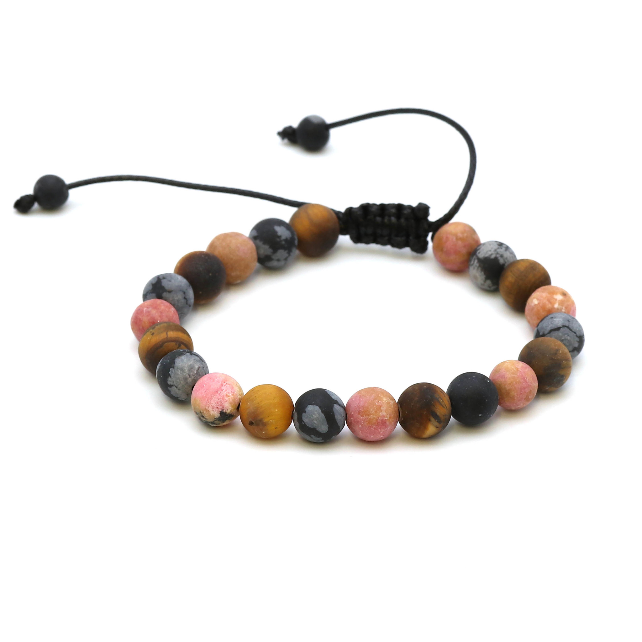"Maitri" Rhodonite, Obsidienne flocon de neige & boules d'oeil de tigre 8mm bracelet