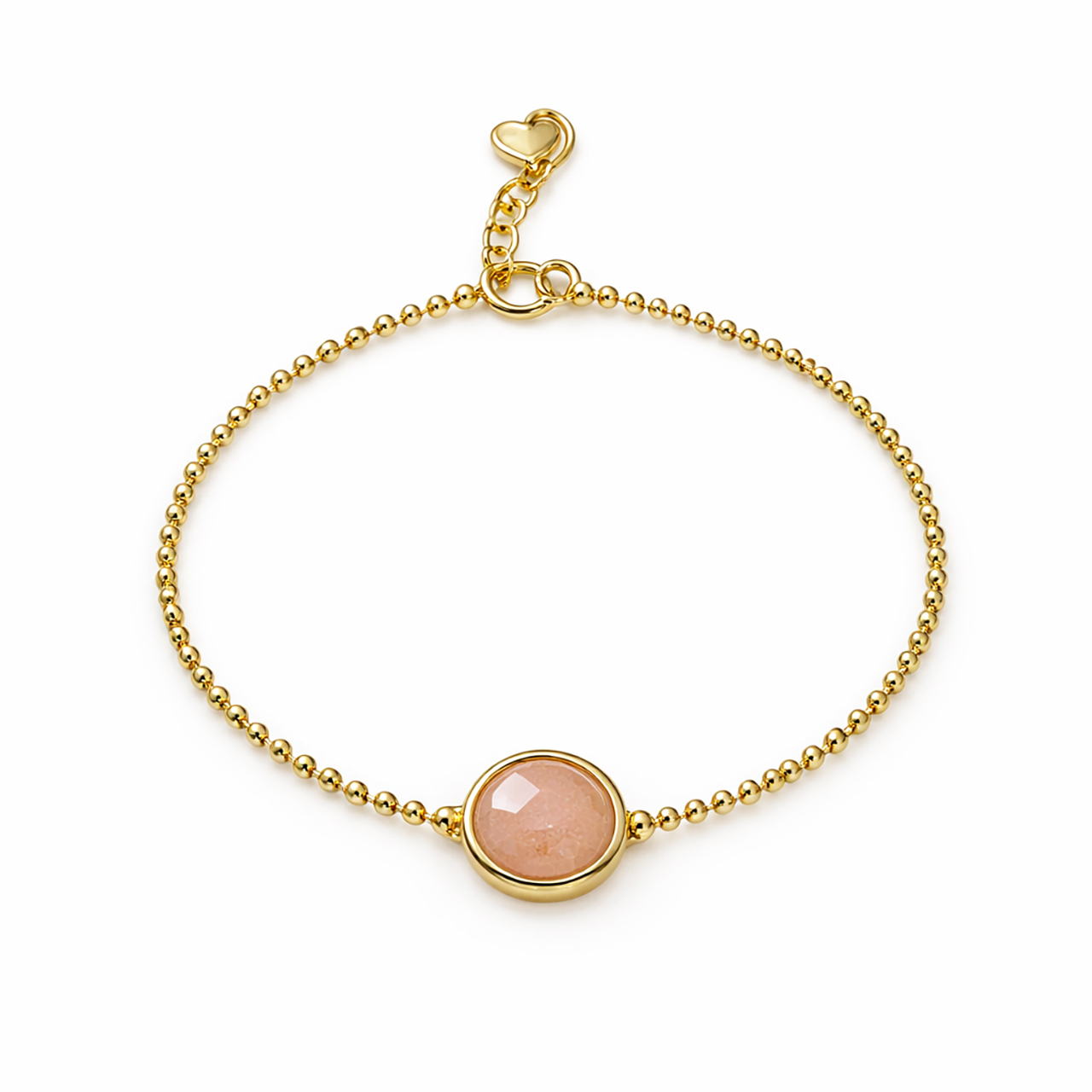 Dieses feine Armband vereint zeitlose Eleganz, im Zentrum sitzt ein facettierter Mondstein peach Disc 12mm in einer messing-vergoldeten Fassung. Mit einer Länge von 15.5cm und einer Verlängerung von 2.5cm lässt sich das Armband individuell anpassen.