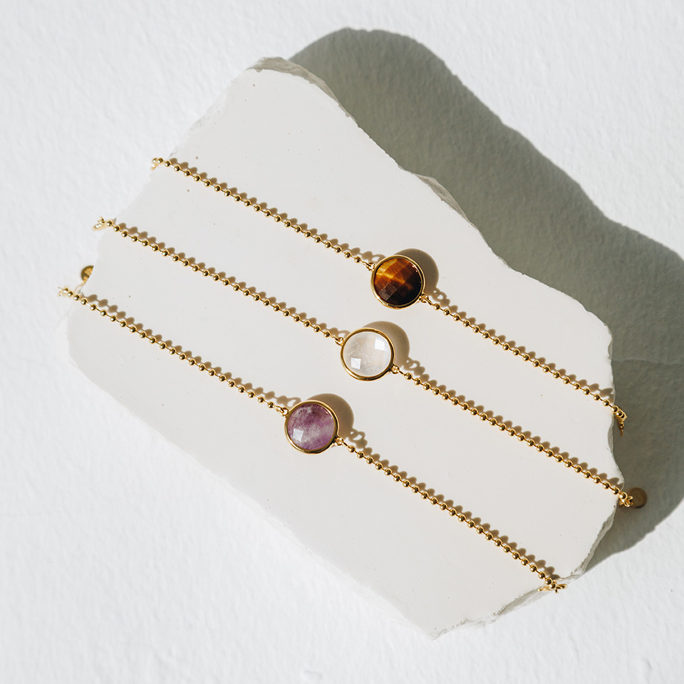 Dieses feine Armband vereint zeitlose Eleganz, im Zentrum sitzt ein facettierter Tigerauge Disc 12mm in einer messing-vergoldeten Fassung. Mit einer Länge von 15.5cm und einer Verlängerung von 2.5cm lässt sich das Armband individuell anpassen.